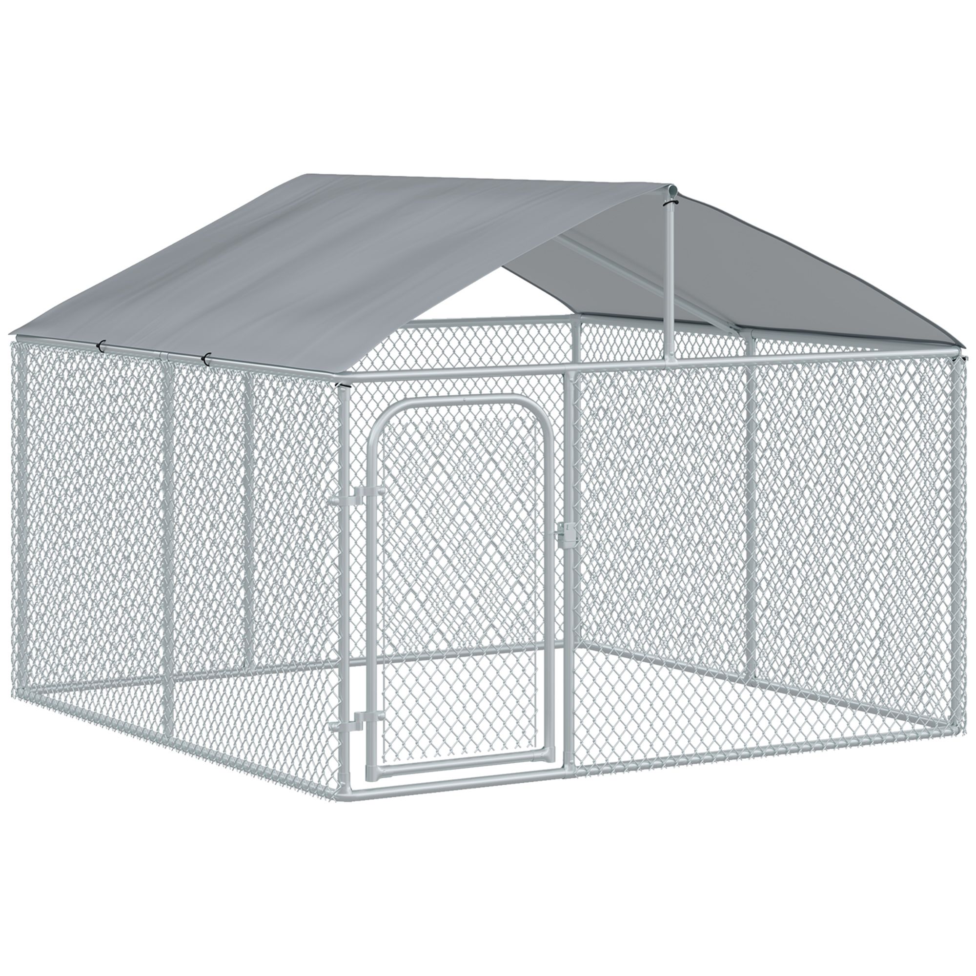 Outdoor Dog Kennel with Roof, Dog Run with Waterproof & UV-Resistant Cover, Secure Lock, for Backyard & Patio, 7.5' x 7.5' x 5.7'