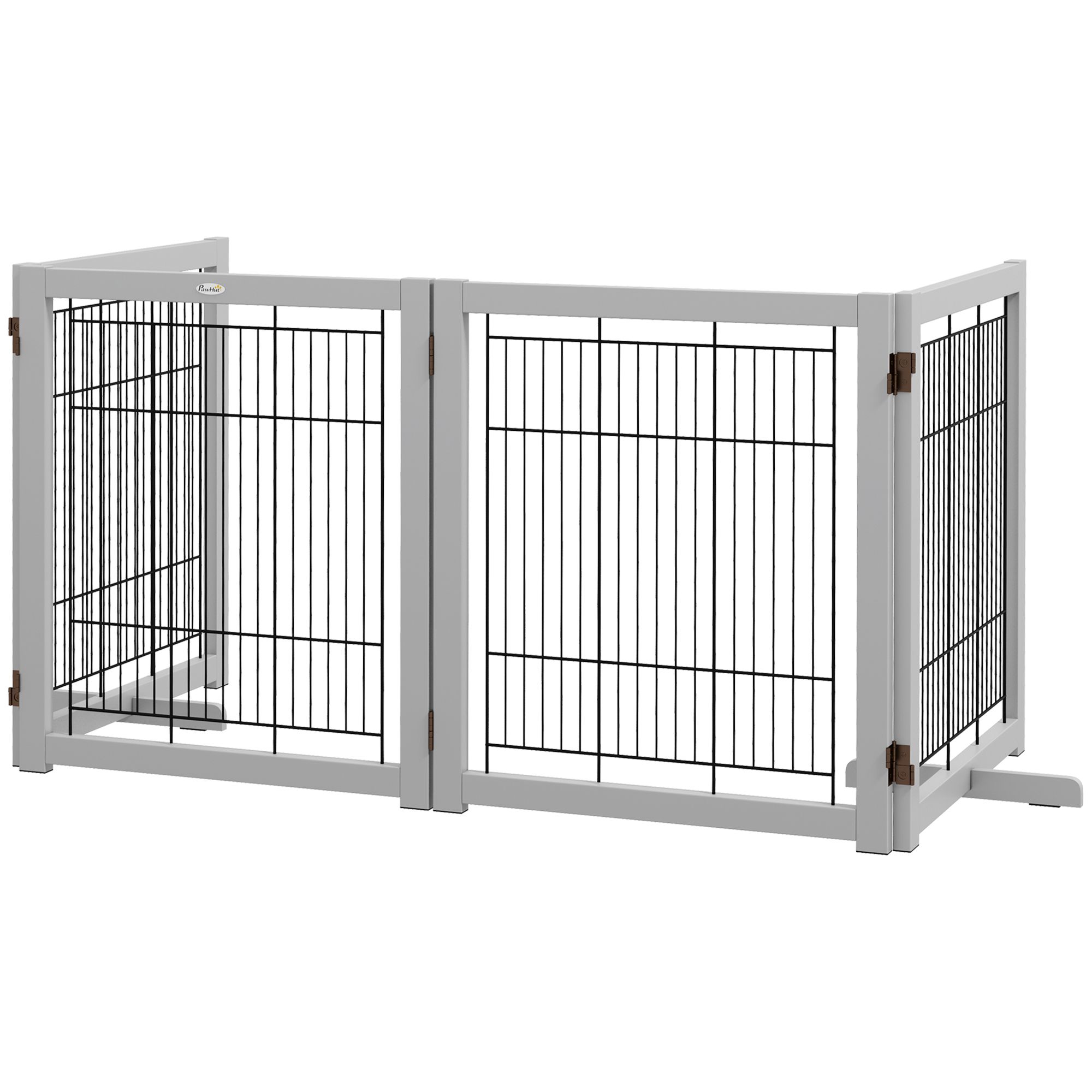 Home > Wooden Dog Gate for Small & Medium Dogs 4 Panel w/ Support Feet Foldable Pet Fence for House Doorway Light Grey