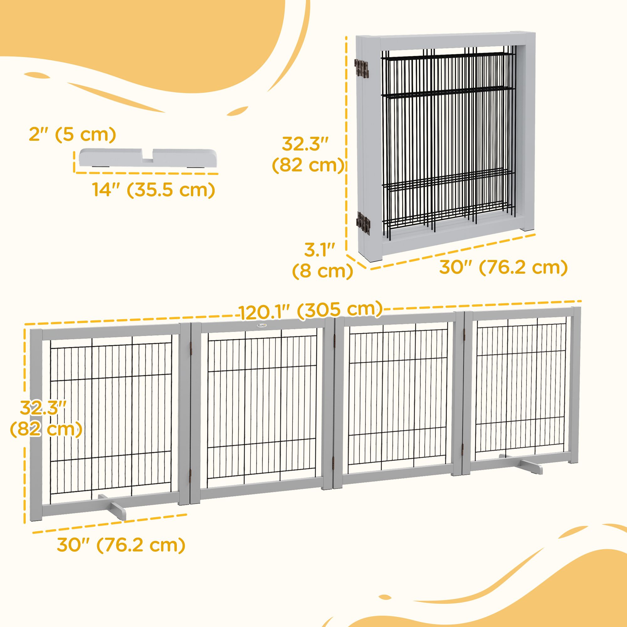 Wooden Dog Gate for Small & Medium Dogs 4 Panel w/ Support Feet Foldable Pet Fence for House Doorway Light Grey