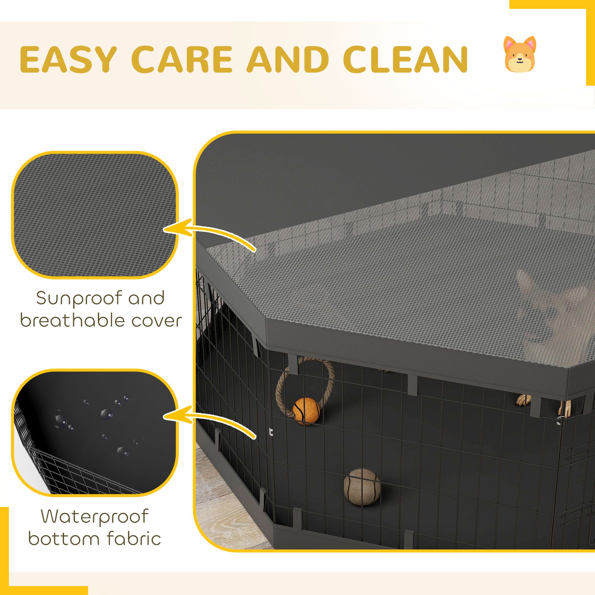 Discover the joy of happy playtimes with the PawHut puppy pen! Featuring a waterproof bottom and a top cover with mesh and sunproof sections, this dog fencing ensures your pet stays comfortable and protected. It includes a door with secure latches for easy access and safety. Suitable for small and mini-sized dogs to frolic freely and safely.