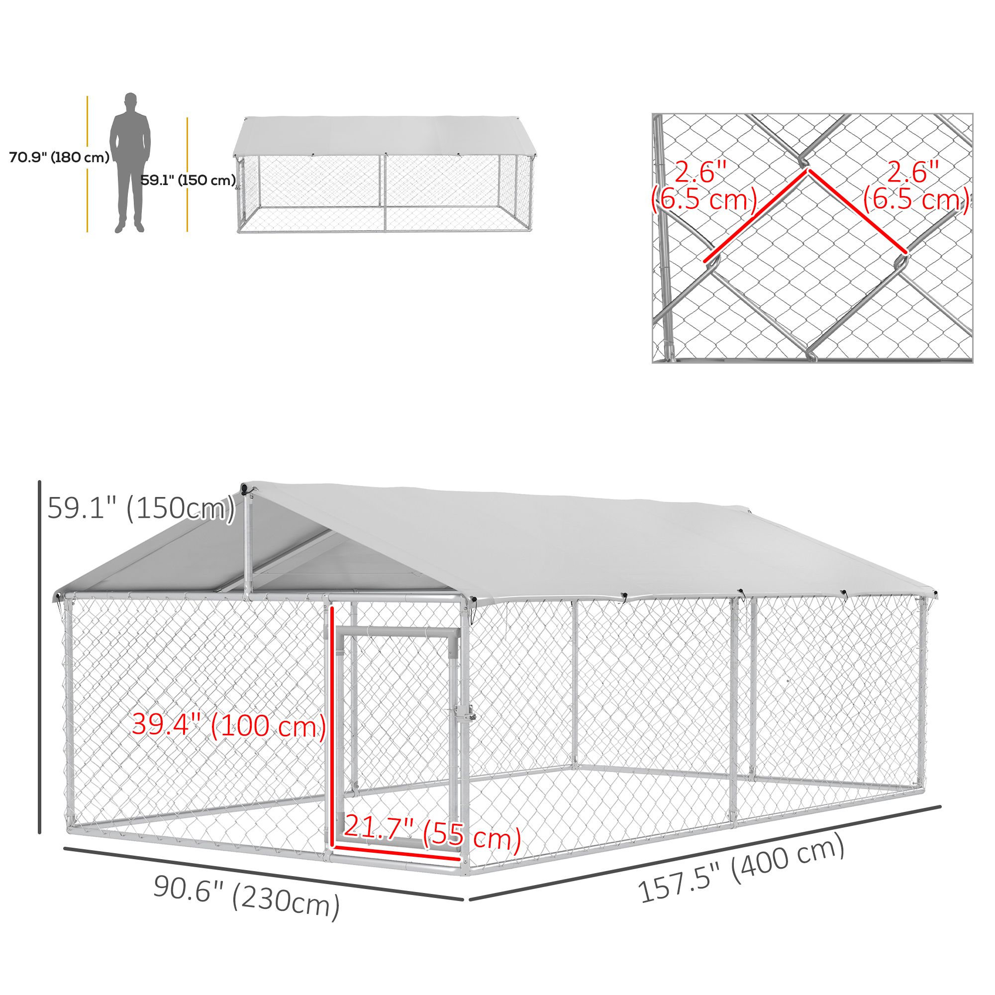 13.1' x 7.5' x 4.9' Outdoor Dog Kennel Dog Run with Waterproof, UV Resistant Cover for Medium Large Sized Dogs, Silver