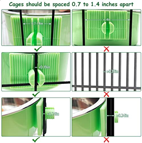 MATERIAL: Made from food safe stainless steel and Eco-friendly thickened plastic; safe and healthy to use for your pets. SIZE: Diameter: 5.9 inch; High: 2.1 inch; Capacity: 150g. 2 Set of Crate Bowls for Pet; one for food; the other for water. Suitable for small dog/cat/rabbit.